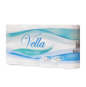Papier toaletowy Vella wykonany z celulozy, 2-warstwowy, w kolorze białym. Każda rolka zawiera 250 listków. Sprzedaż w kartonie – 64 rolki (8 zgrzewek po 8 rolek).
