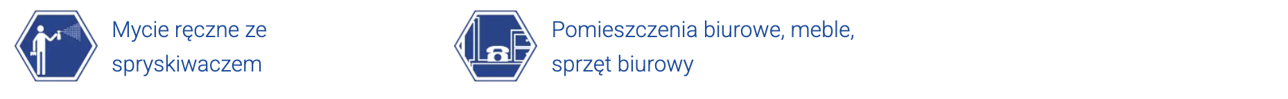 • SPOSÓB UŻYCIA: Produkt gotowy do użycia. Czyszczenie mebli – nanieść preparat bezpośrednio na czyszczoną powierzchnię i przetrzeć szmatką niepozostawiającą włókien. Czyszczenie urządzeń biurowych – nanieść preparat na szmatkę i przetrzeć powierzchnię. Nie ma potrzeby osuszania powierzchni.